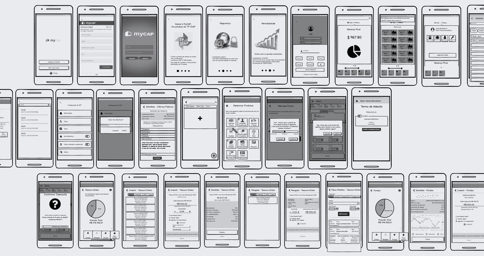 O ponto de partida era um protótipo em PDF, com baixa fidelidade, sem identidade visual definida, padrões de interface ou estrutura para crescimento.
